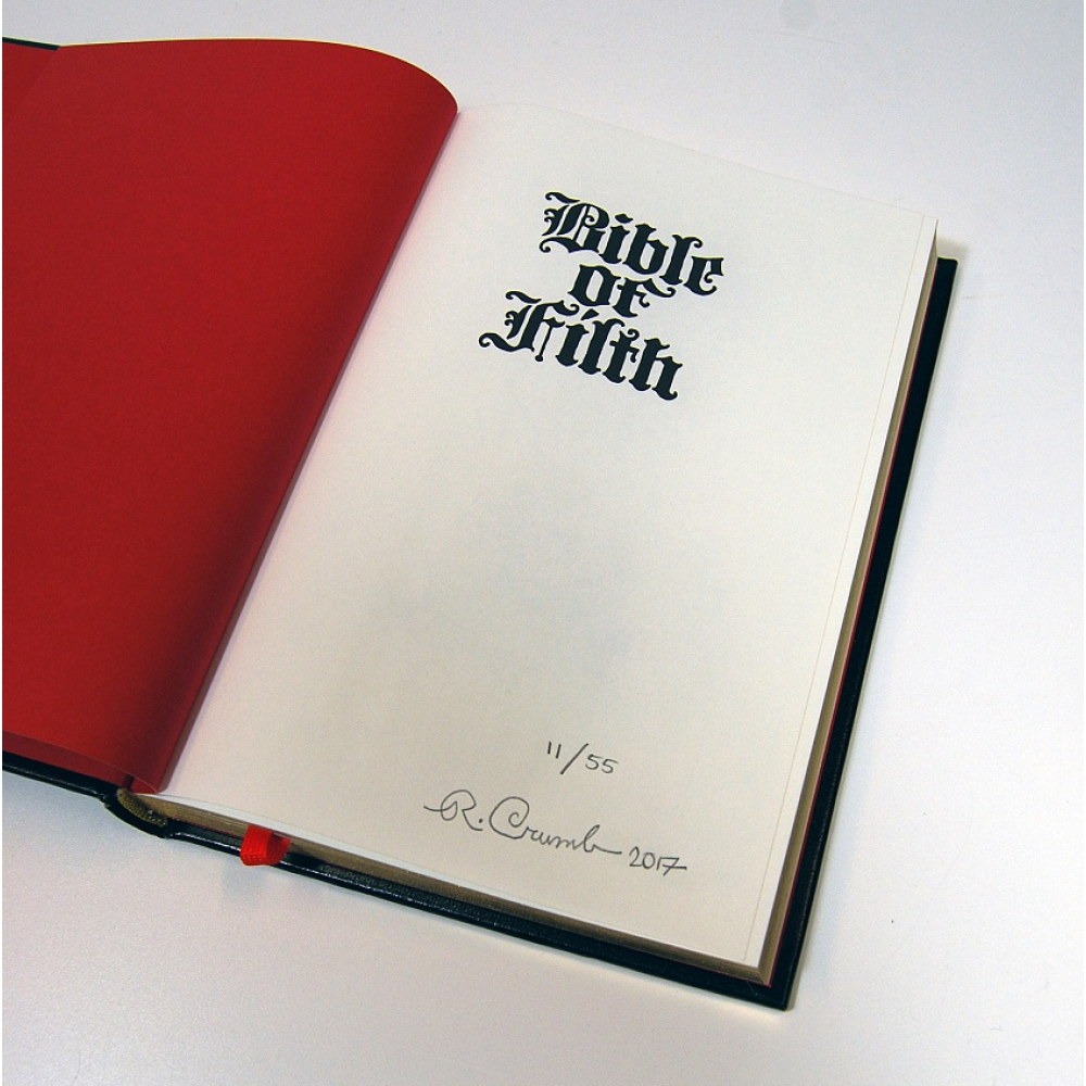Robert Crumb’s most outrageous sexual fantasies are collected in this all new, revised edition of the comix classic Bible of Filth. This beautiful edition, printed on bible paper, with its austere cover, ribbon marker and gilt edges, holds no clues as to its contents: R. Crumb’s most explicit comics from magazines like Snatch, Jiz, Zap, XYZ, Big Ass and Uneeda.